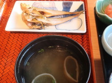 7時半からハタハタ一夜干し、アラメ煮物など地元の海の幸を中心にした朝食をゆっくりといただきました。