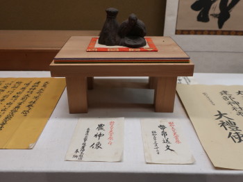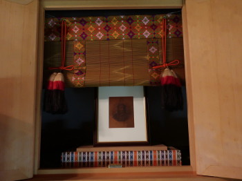 幻の千円券 日本武尊と建部大社が図柄に使われた昭和20年8月発行の当時の最高額である千円札(複製)が 日本武尊像神棚の横に展示されていました。 これは金と交換できる「日本銀行兌換券」として発行されましたが、終戦直後の急激なインフレに対処する 緊急金融措置によって21年3月に使用停止となり、幻の千円と呼ばれる7カ月の短命の紙幣です。