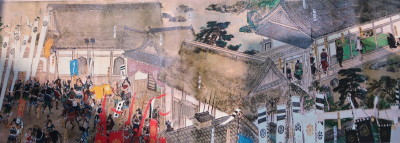 家康が常善寺へ入る場面が描かれた草津宿太田家に伝わる絵巻