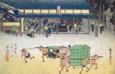 「東海道五拾三次之内 草津」 (歌川広重) 「うばがもち」