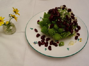 ブロッコリーとカリフラワーの合いの子のようなブロッコロ・ロマネスコでした。