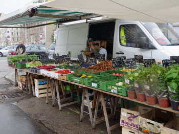 地元の生鮮品の他、トルコ、アラブ、アジアなどのエスニック食材店が並び、少し怪しげなすし店も見られました。