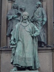 知性、正義、力、慈悲の寓意像に囲まれたマリア・テレジアの下に立つのは名宰相として名を馳せたカウニッツ伯爵で、
