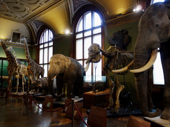 人類の起源、哺乳類、鳥類、爬虫類、昆虫類の剥製や標本、恐竜、翼鳥、始祖鳥などの模型や骨格標本、化石や鉱物などが