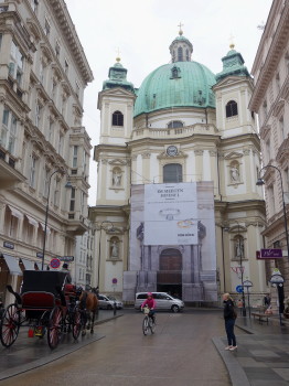 オイゲン公のベルヴェデーレ宮殿と同じヒルデブラントの設計で、1701〜33年に建設されたバロック建築のペーター教会は、